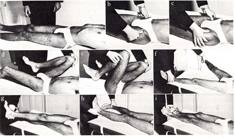 Ein einseitiges Knie-Streckdefizit, der Beinschenkel Winkel zum Becken, Hüftgelenke und Wirbelkörper-Stellungen verändern sich.