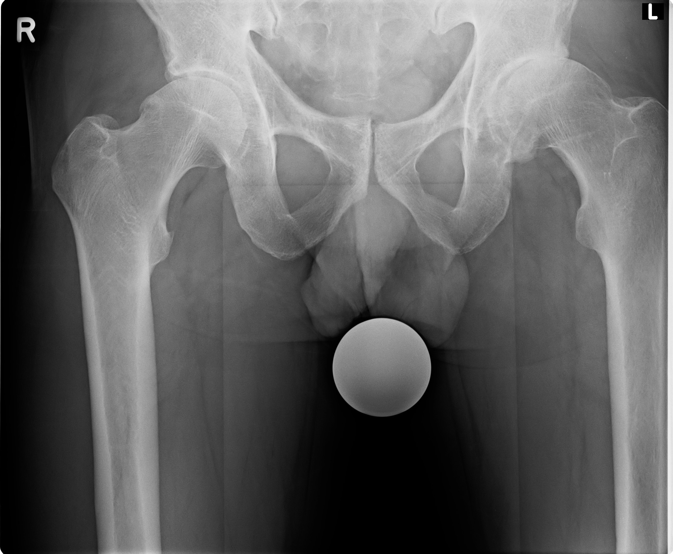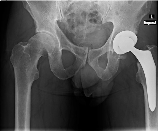 Hüftkugelübertragung dagegen gehalten.