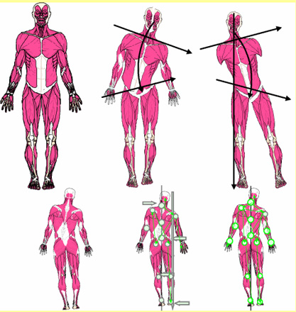 Der Grund einer Beschwerde sind vielmals Muskelfehlspannungslinien, die zu Überdehnungsschmerzen führen. Diese Ausweichhaltungen werden als Fehlstatik vermessen.