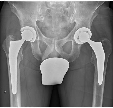Hüftkugelübertragung dagegen gehalten.